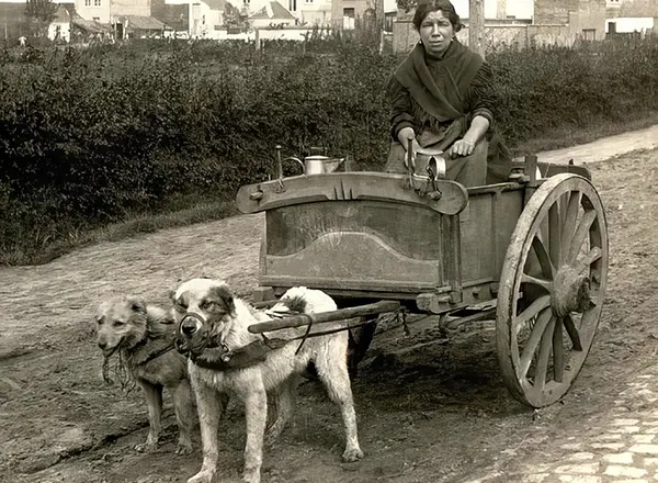 Использование собак для тяги тележек имеет глубокие корни. В Британии эта традиция существовала до 1840 года, но из-за опасений за безопасность пешеходов и благополучие животных была запрещена. Запрет мотивировался еще и страхом распространения бешенства.