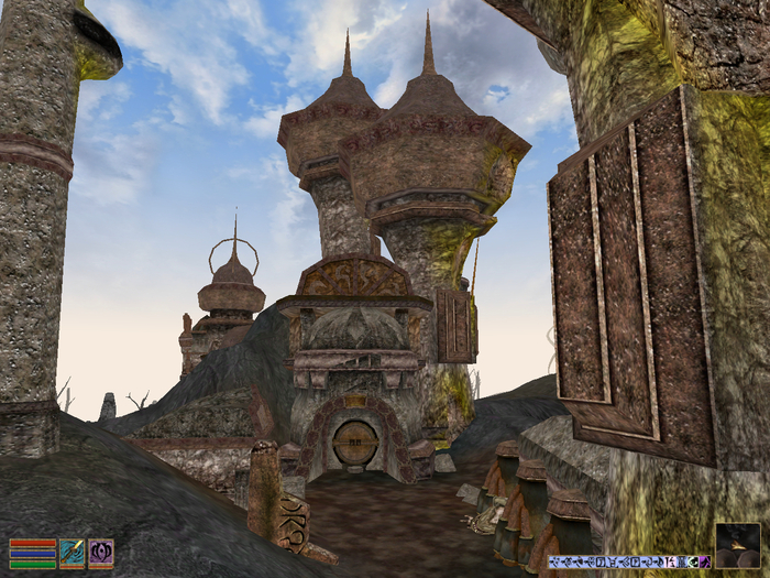 Двемерские руины, находящиеся внутри Призрачного Предела к западу от Веминала. Одна из немногих локаций Красной Горы, не захваченная адептами Шестого Дома. Пепельные монстры бродят вокруг, но внутрь почему-то не лезут. Там старые добрые паровые механизмы и призраки бывших хозяев. Поживиться в руинах, впрочем, особо нечем. Так, двемерский цилиндр, кружка, ржавые детали, ингредиенты из бочек и рэндомное содержимое сундуков.