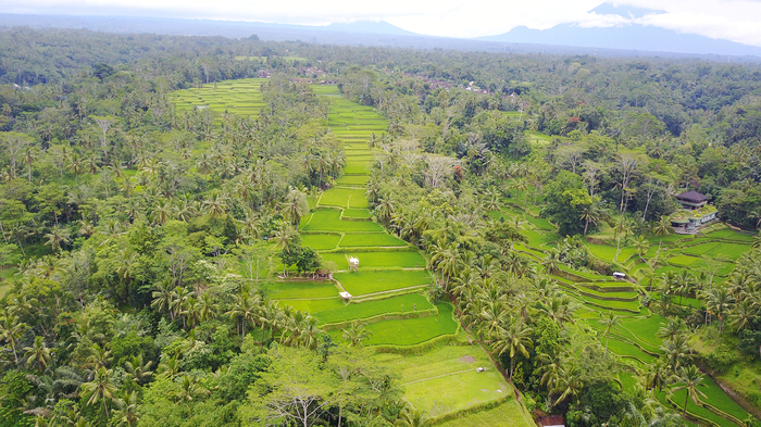 Первая ассоциация с островом Бали - конечно же зеленые рисовые террасы. Путешествуя по всему острову наблюдаешь эти огромные зеленые поля с цветущим рисом (нам повезло в это время оказаться на острове).