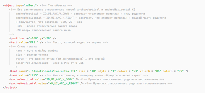 Объект типа xdText с именем tFPS который будет счетчиком фпс