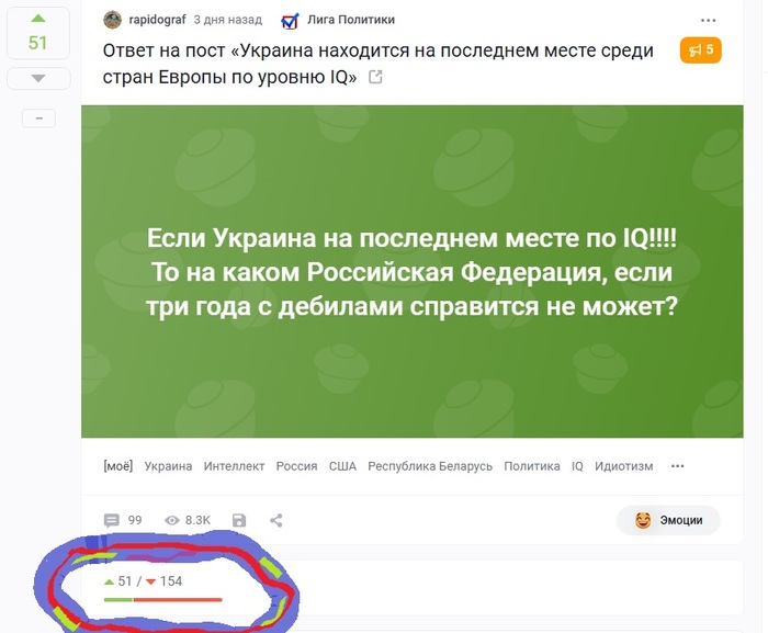Положительные оценки поставили 51 участников обсуждения , отрицательных оценок в ТРИ раза больше !!! целых 154 балла антирейтинга !!!