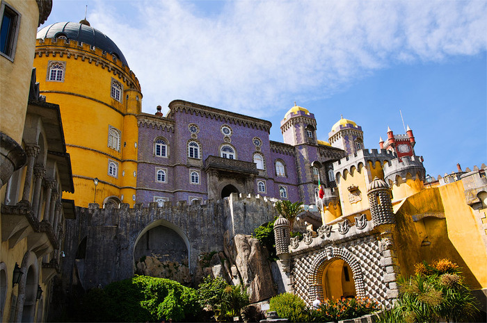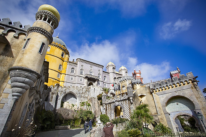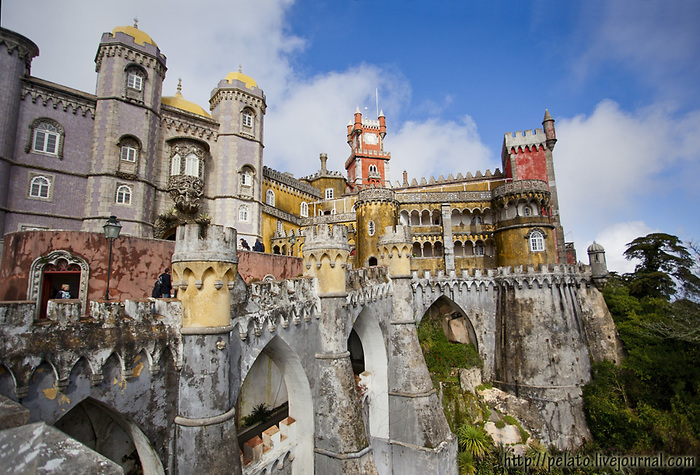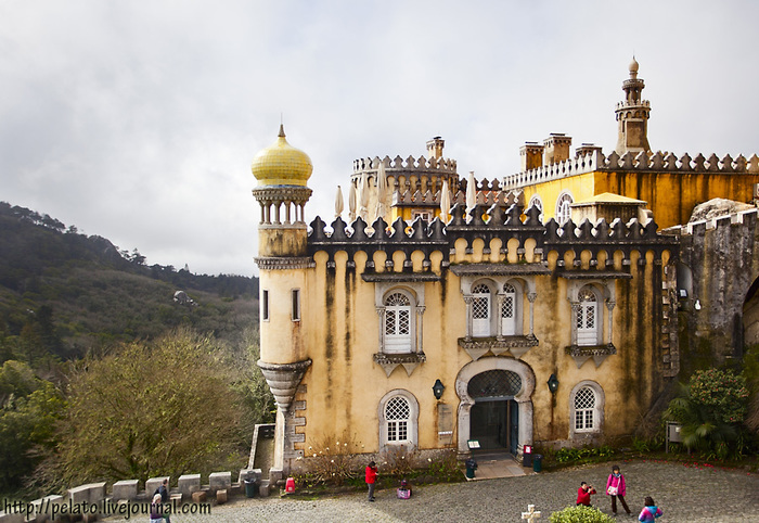 Этот изумительный замок представляет собой причудливое смешение стилей, что вполне соответствует экзотическим вкусам поклонников романтизма 19 в. Здесь можно увидеть элементы неоготики, неомануэлино, неоисламского стиля и неоренессанса, а также отсылки к другим замечательным португальским зданиям — таким, к примеру, как башня Белема.