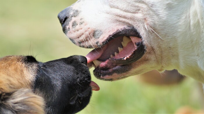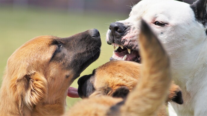 Старший в семье пёс контролирует поведение щенков-найдёнышей.