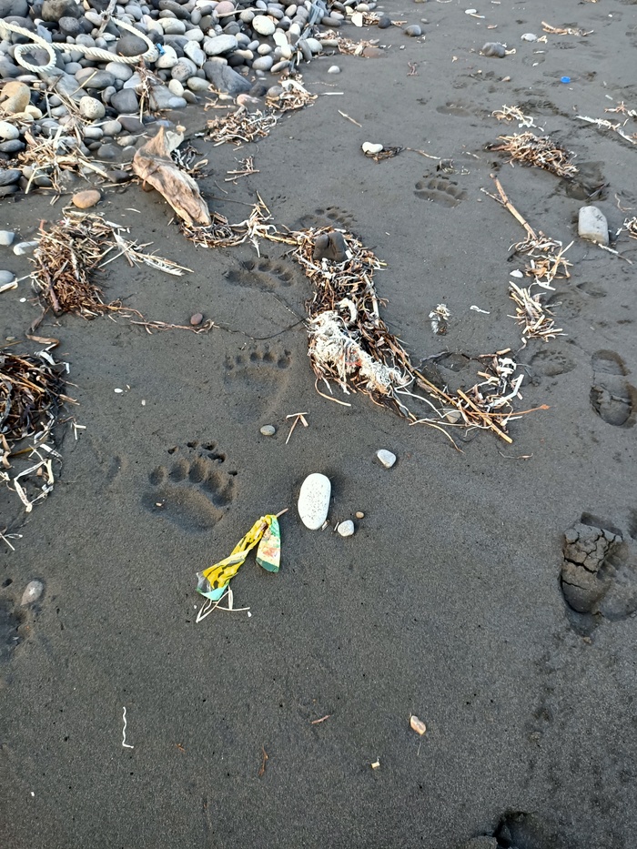 Вообще, этот и следующий день, одни из лучших в моих путешествиях. Сам кайф от осознания того, что слева у тебя бушует тихий океан и такие рельефы и природа вокруг, что глаз радуется постоянно, и с погодой повезло. Следы медведя - на всем протяжении маршрута.