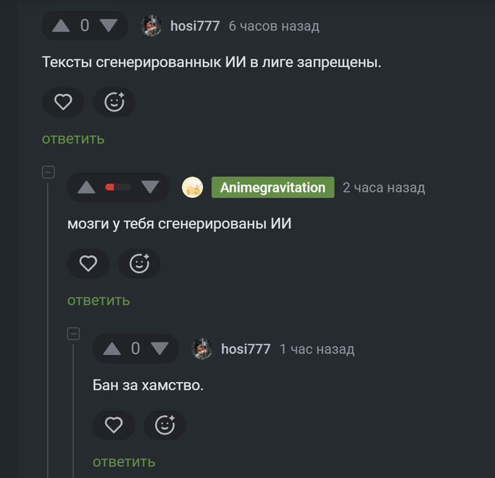 Нарушения персонажа сводились не только к грубому общению, но и к использованию ИИ в создании постов/комментариев, что в сообществе также запрещено.