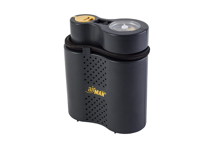 Чуть позже на полках появился AirMan TOUR, размером примерно с два кулака. Он, кстати, до сих пор продается, по цене около 4 500р. Этот компрессор уже явно намекал на мотоциклетное использование, т.к. имел разъем стандарта ISO 4165 ("маленький бээмвэшный прикуриватель") со съемной нашлёпкой для использования в стандартной автомобильной розетке.