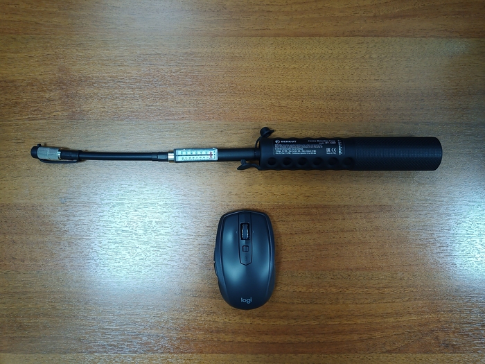 А еще при самом первом взгляде на девайс у меня возникло недоумение, почему они длину шлангометра сделали длиннее самого корпуса. Прочность цепи определяется прочностью самого слабого звена компактность упаковки определяется размером наибольшего элемента. Шлангометр неразъемный, а под манометром торчит какая-то нелепая пластиковая писька.