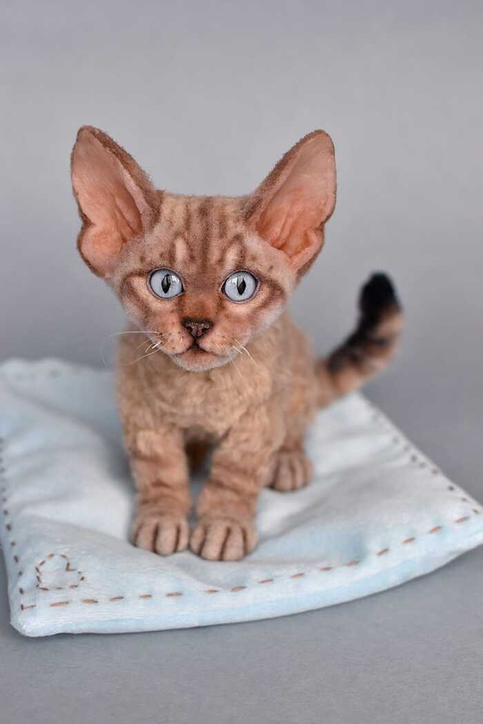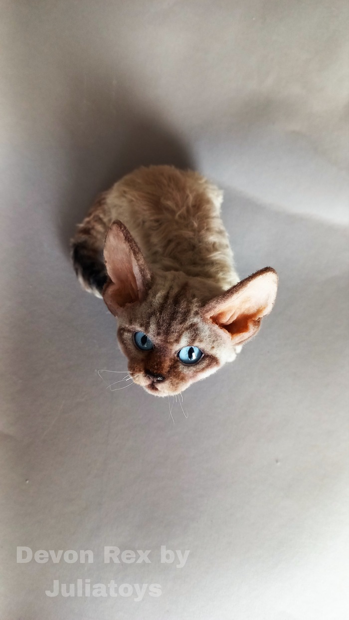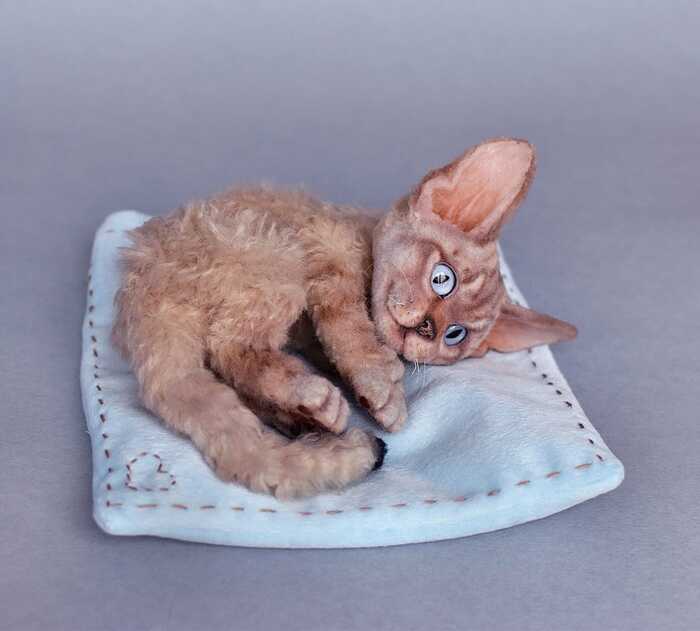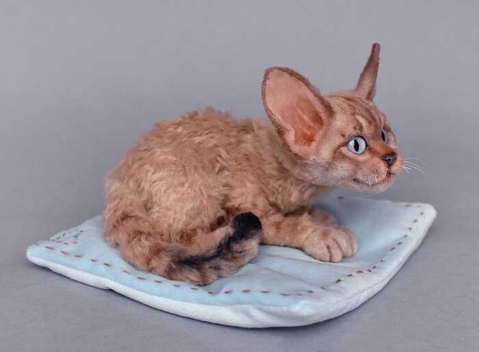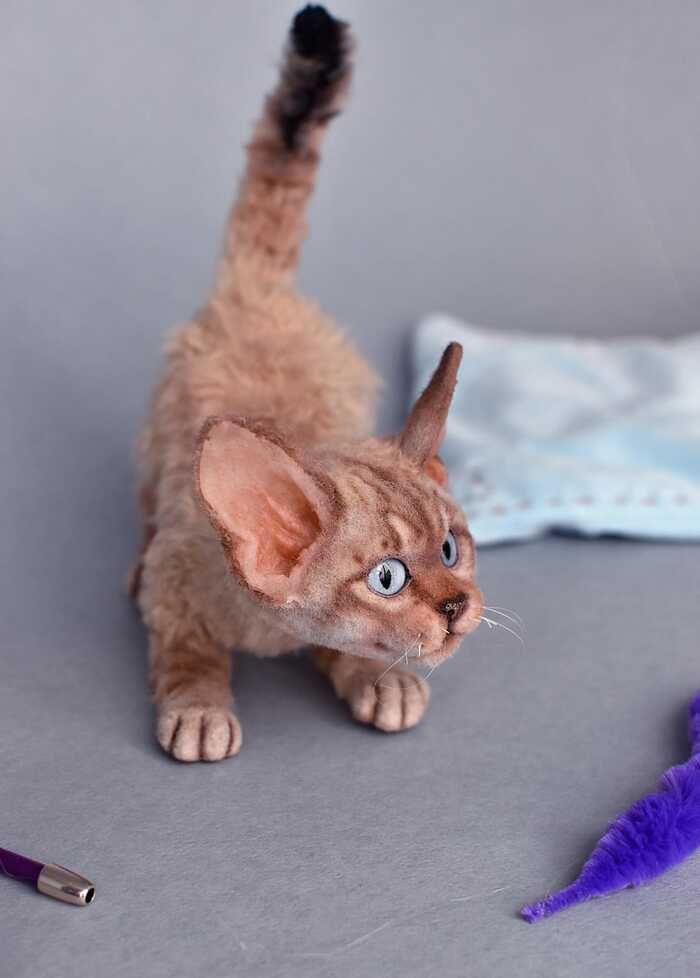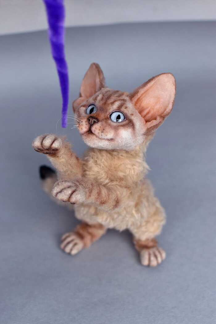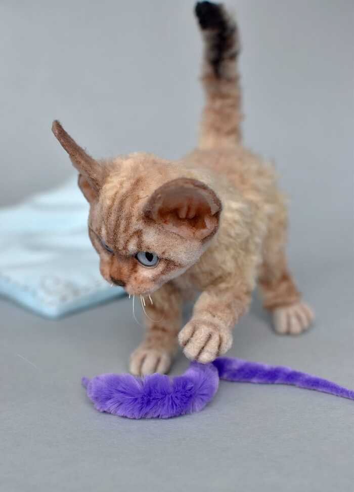 Девон-рекс в смешанной технике. Полностью каркасная игрушка. Двигается все тело.