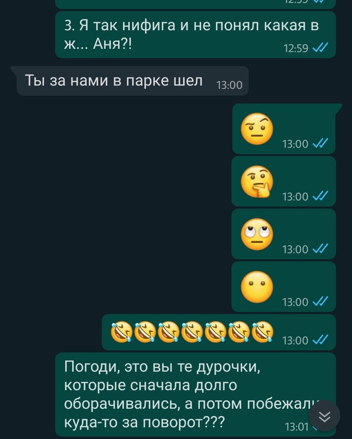 «Почему ты меня не остановила?!» - раздался рев сзади. Я побежала вперед, сломя голову и, шурша кустами, выскочила на дорогу. Надо было куда-то бежать. Плохо соображая от страха, я нырнула в гостеприимно распахнутую дверь своего подъезда, позабыв, что здесь не живет сейчас ни моя семья, ни кто-то из соседей. А когда вспомнила об этом, выбегать из подъезда и искать другое укрытие было бы поздно. Ища укрытие получше, чем просто подъезд, я пошла по этажам, дергая ручки дверей, ища незапертую.