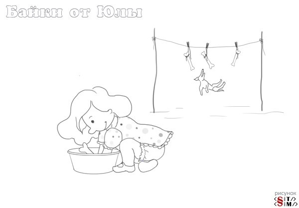 — Мама сказала, что вы здесь сидите, чтобы косточки мыть. Вот и я захотела с вами. Вы же собачек ими кормите?