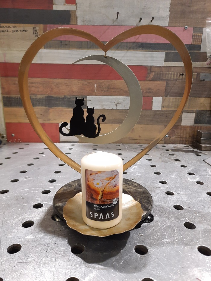 А этот подсвечник был сделан в подарок папе и его жене. Жаль только не засняла, как красиво падает тень от котиков на стену