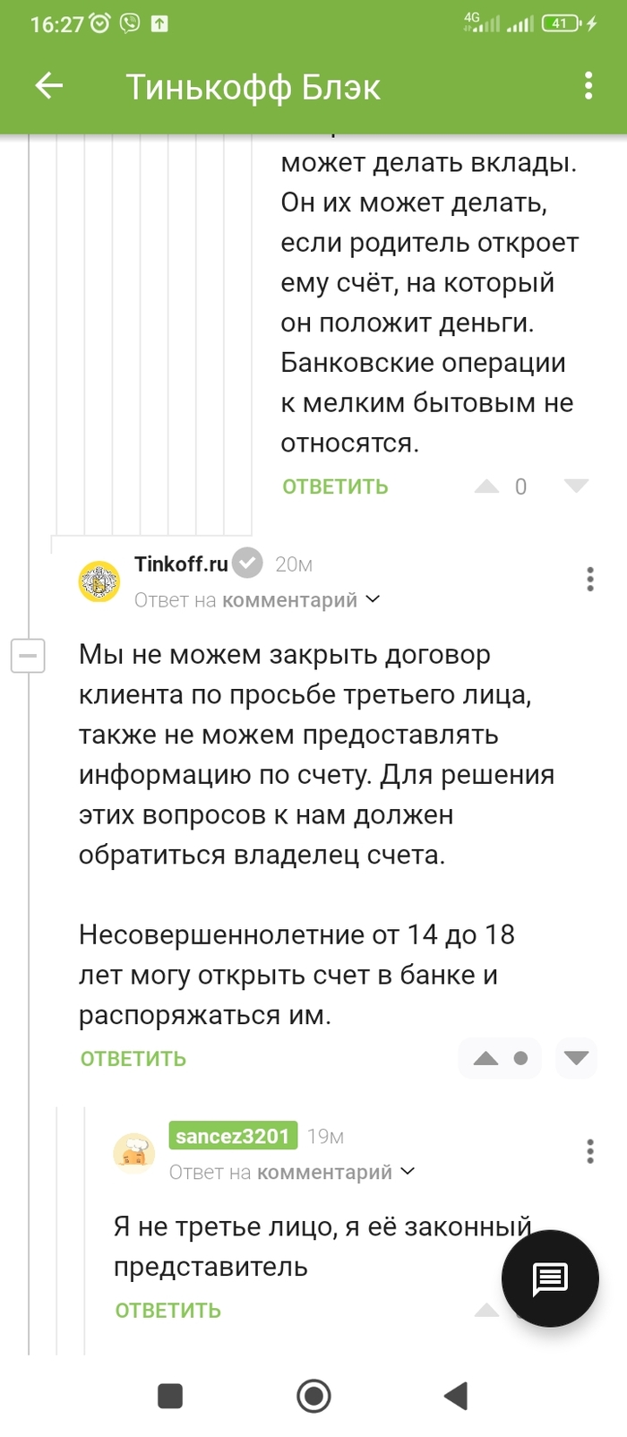 Я попыталась закрыть счёт. Сказали что сама дочь должна звонить и закрывать. Спросила сколько надо заплатить при закрытии счёта, так как там комиссии всякие у них, я не знаю что она уже сделала по счёту, информацию дать отказались, так как я третье лицо.