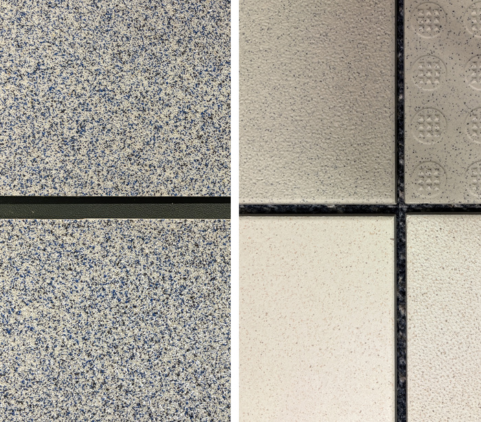 Для одного цвета и материала пола могут существовать разные варианты покрытия, у которых коэффициент трения (сопротивление скольжению) зависит от области применения. Так, требования к «скользкости» пола в прихожей отличаются от требований в ванной комнате, а требования к промышленным кухням — где на полу может быть разлит жир и активно работают люди — ещё выше. Иногда покрытия выглядят одинаково, иногда рельеф сразу бросается в глаза. И цвет, и текстура пола влияют на то, как сложно будет его поддерживать в чистоте.