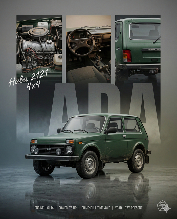 Подходит эта история не только для легендарных автомобилей — по тому же промпту сделали родную «Ниву», чтобы порадовать старших родственников.