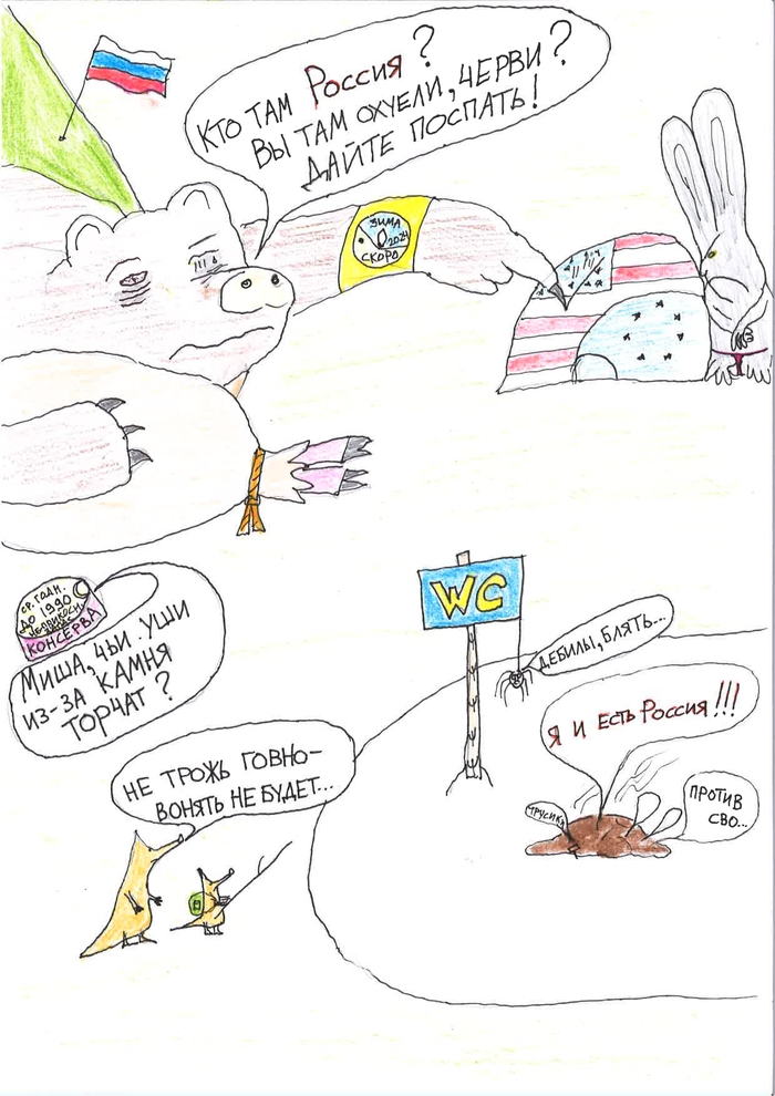 Почему этим должно заниматься фсб. Но фсб, и не зря их сейчас называют лохами в погонах, не видит проблемы. Не осознаёт её. Поймать дурака, который поджёг трансформатор - это да. Молодцы. Захуячить шпиона, который объекты фотографирует - это да. А вот осознать, что новость в "горячем" на пикабу "Все же помнят железного Арни?", "Я работаю копом в Калифорнии", "It`s Wednesday, my dudes", "переводы с реддита" - это не просто новости, это не безобидная хуйня, а запланированное организованной и слаженной группой лиц действие, они не сопособны. Муха хуярится в стекло, не понимая, что оно есть. И лохи из фсб хуярятся в эту медийную ловушку башкой, не осознавая её опасности и преднамеренности. Они потому и лохи, что не способны увидеть, как из русскоязычного общества формируют на ментальном уровне общество проамериканское. Не сопособны увидеть, как делают из россиянина чехол для западного члена, как из России делают штат сша. Это они не видят. Как их винить? Муху же нельзя винить в том, что она эволюционно нихуя не понимает. Они (или даже обычные люди) могли бы увидеть проблему очень просто. Им достаточно сходить в любой магазин одежды и посмотреть, что сейчас продают их детям. 90% одежды имеют надпись на английском языке. А почему, лох из фсб? Почему в твоей стране, которую ты поставлен защищать, детская одежда, детские тетради, детские пенали, ранцы - всё имеет надписи на английском языке? Я отвечу тебе. Не напрягайся, муха. Потому что армия бесплатных полезных идиотов, которые были созданы именно через манипуляции общественным мнением, искренне верят в то, что так и должно быть. Что в России надписи на майке должны быть тамими: "Sweet princess", "Little pony", "California" и так далее. Россия - плохо, сша - хорошо. Связка в деле. В реальности уже.