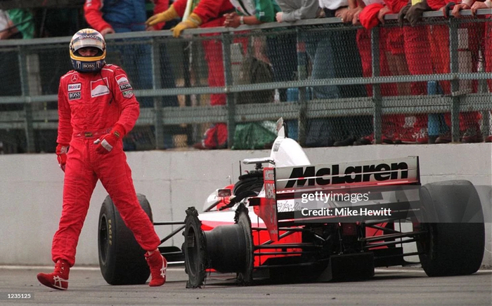На том же круге Бергер сошел с дистанции из-за поломки двигателя. После своего пит-стопа Хилл пытался нагнать Култхарда, но на 58-м круге совершил вращение и вылетел с трассы. Удар о барьер из покрышек был достаточно сильным, чтобы вызвать небольшую трещину в кости ноги.