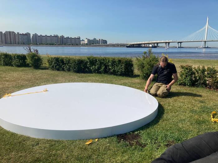 А тут ставим подиум для молодоженов с красной дорожкой и аркой