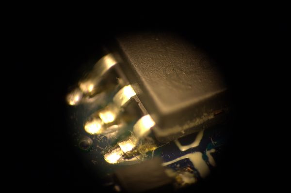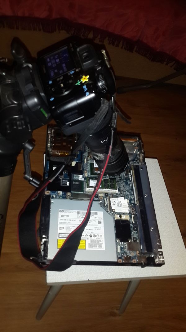 Периодически и дома занимаюсь ремонтиками, но потребовался микроскоп, чтоб поглядеть, что творится на плате ноута после попадания жидкости на него. Потребовалось ОЧЕНЬ крупно взглянуть на потрⱯшка (опять на ударение похоже?) ноутбучные... Дома микроскопа нет вообще никакого, только на работе, но мы то тоже не пальцем деланы... У нас есть фотик...