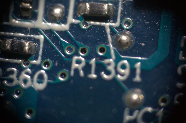 Посмотрим как плату показывает, отлично показывает. Хорошая резкость и отличная глубина. Под таким увеличением удобно искать дефекты пайки и трещины в дорожках. Работать приятно и удобно.