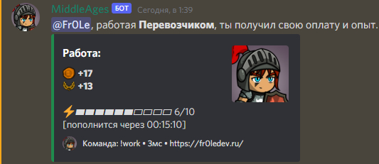 Например командой !work, можно пойти работать