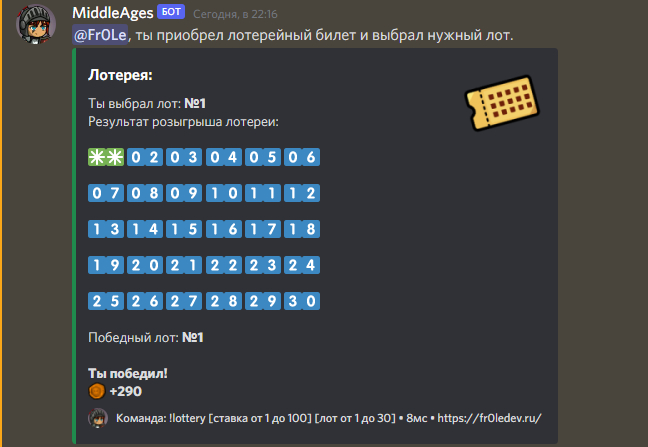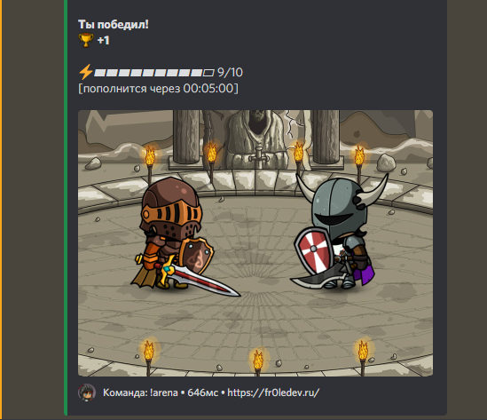 И после всего нафармленного, можно и сходить на Арену, командой !arena