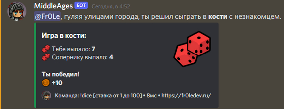 Решил как-то я сделать бота с элементами RPG и взаимодействием командами через чат. Хотел сделать пару команд, просто по фану, но так вовлекся в процесс, что уже 3 месяц его дорабатываю и эта "пара" команд превратилась уже в 25+ да и ещё с разными аргументами.
