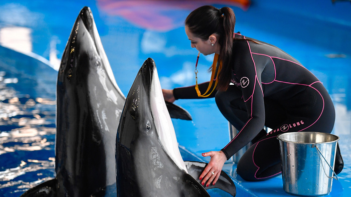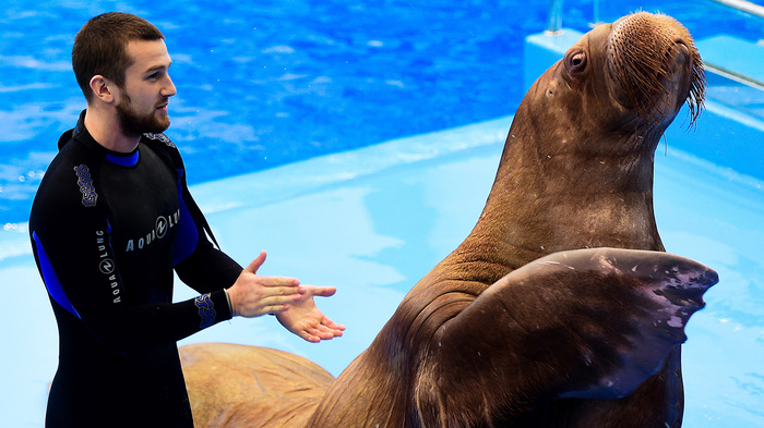 Морские млекопитающие — социальные животные, и им в радость любой контакт с человеком. К тому же тренировки или шоу для них — это метод докармливания. Все полезные вещества, в том числе и воду, эти животные берут из рыбы. Поэтому очень важно, чтобы звери получали еду в достаточном количестве.