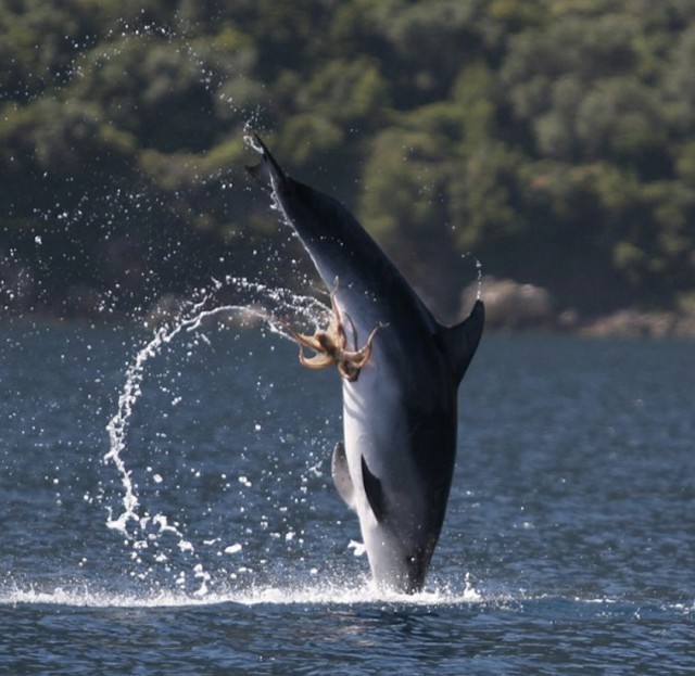Осьминог на фото ниже занимался своими делами у побережья Западной Австралии, когда его вытащил из воды радостный дельфин-афалина. Веселое животное начало швырять несчастного моллюска из стороны в сторону.
