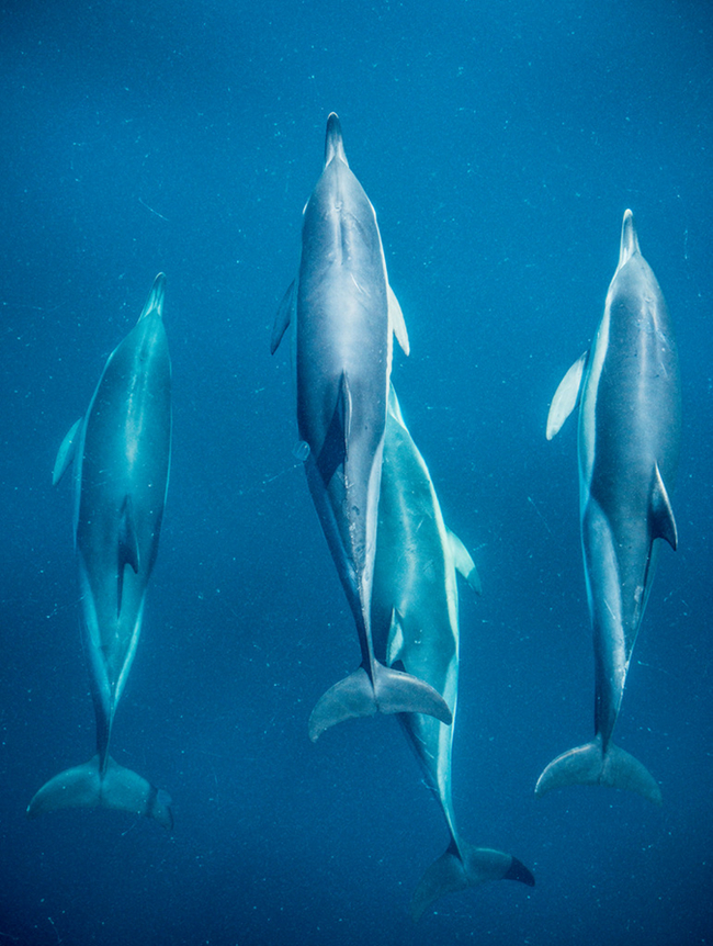 Было утро, образовался штиль, и внезапно к нам пришли дельфины! В спокойной воде их было видно довольно глубоко.