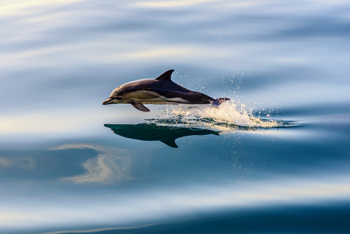 Еще на этом фото есть очень счастливый — отражающийся в мокром боку дельфина — я.