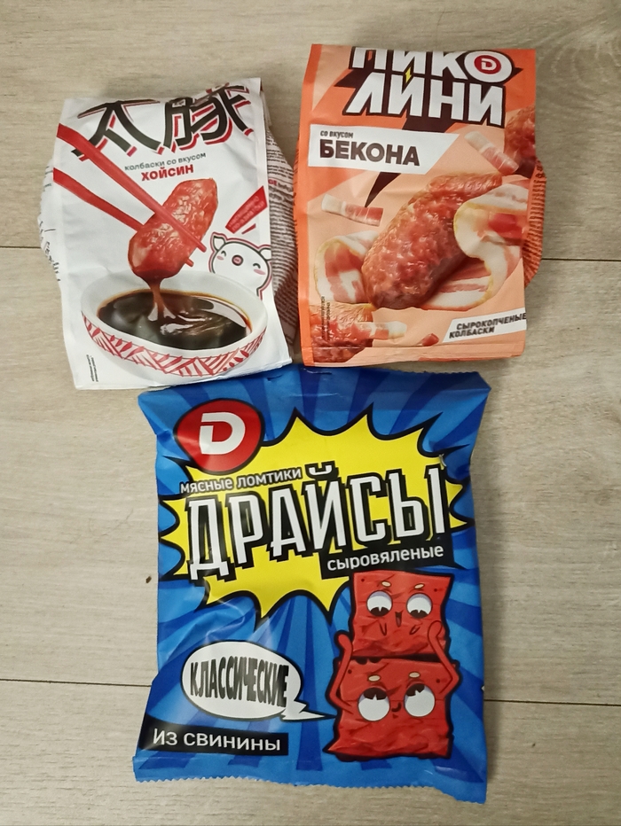 Дальше моё внимание привлекли вкусняшки, произведённые в родном Красноярске. Я указала в анкете, что не люблю сладкое, но обожаю мясо. Попадание 100%. Одна упаковочка уже ушла под пиво. 🍺