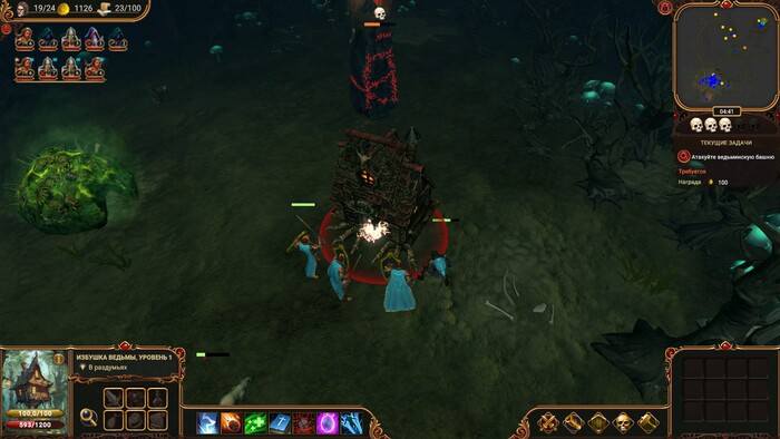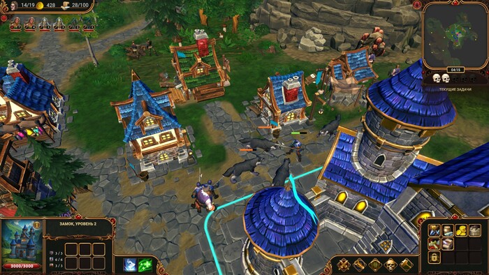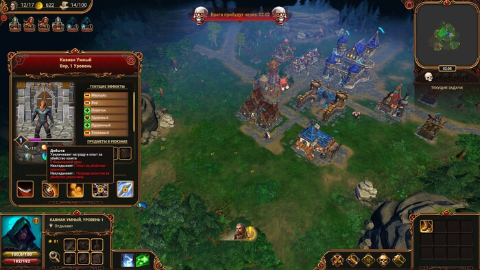 12) В плане геймдизайна немного обидно за скорость, с которой исследуются те же заклинания или зелья здоровья в магической лавке. Кажется, построить огромное здание куда быстрее. А если с королевским пинком... Короче, если сделать эти вещи короче на секунду, едва ли баланс станет хуже. Тенденция долгого ожидания, как в том же The Riftbreaker, нравится не всем. Более того, те же заклинания надо сначала изучить за золото, а потом за золото и остаётся использовать. А вот кулдаун того же лечения кажется идеальным. Откат и не мгновенный, и не очень долгий.
