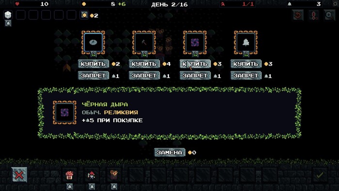 Покупаемые за золото реликвии и прочие вещи дают разные бонусы и эффекты, что открывает путь к ситуативному билдостроению. Часть предметов напрямую может повлиять на передвижение врагов. Часть даже, так скажем, не против, быть потоптана.
