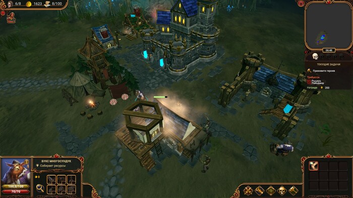 6) Введение ресурса королевского внимания (максимум — 100 единиц, ресурс накапливается) было отличным шагом. Этот ресурс увеличивает скорость добычи в лесопилках и других зданиях, добывающих ресурсы (камень, железо), подгоняет сборщиков податей, подгоняет строителей, даёт дополнительное указание герою пройти вот туда-то. Обычно действие тратит 10 единиц этого ресурса.