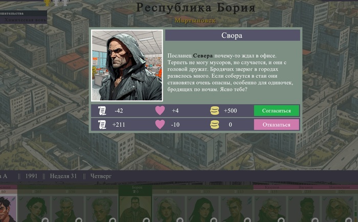Игра от именитых выходцев из ныне почившей Telltail Games. Дальше нужно продолжать? Если да то скажу вам следующее у этих ребят все хорошо с артом, лором, много разговоров и много отношений между персонажами. Персонажей тоже много. Мы играем за сбитого летчика бывшего супергероя, который лишился своей суперсилы и попал на бумажную работу в офисе. Наш герой следит за криминогенной обстановкой в мегаполисе и управляет отрядом активных супергероев, которые имеют очень разный набор способностей и свои сильные и слабые стороны. Мне посоветовали посмотреть на эту игру повнимательнее так как я делаю нечто подобное Газетный магнат, но с бюджетом в 50-100 раз меньше этих знаменитых разработчиков. Смогу ли я что-то оттуда подцепить, ну пока не понятно, разве что прикольные разговоры персонажей между собой в процессе работы. Не буду долго хвалить эту игру ее еще похвалят тысячи других. Демка закончилась очень быстро, много пиара и очень много жира – графика.
