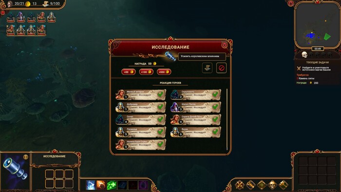 7) Нет, я не забыл, что королевское влияние ещё усиливает флаги героев, но хотелось бы... математики. Игрок имеет право знать, сколько ресурса он потратит на усиление и из этого факта делать выбор, принимать решение. Просто игрок может пожалеть, что всадил много влияния во вроде бы рядовое задание, и потом забить на эту функцию.