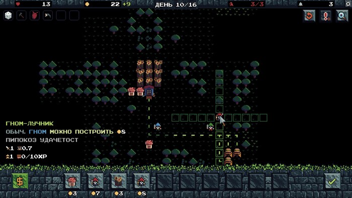 Да, путь гоблинов известен, но если вы в режиме подготовки поставите гнома на квадрат будущей гоблинской тропы, то траектория поменяется. Гном должен нападать как бы из засады. Когда лагерей гоблинов несколько, нужно правильно распределить силы.