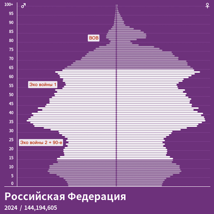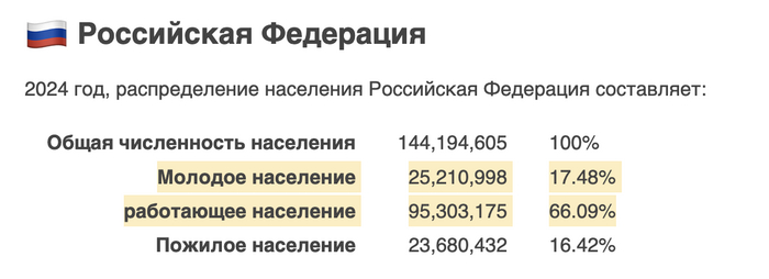 Ещё интереснее сравнить статистику за последние 30 лет: население РСФСР в 1990 году было 148 миллионов человек, то есть даже больше, чем сейчас. На целый город больше. В 2000-м – 146,8 миллионов. Да, лихие 90-е конечно внесли свою лепту, но на удивление, народу было чуть больше, чем в наше время. В 2010 – 142,8 миллионов – спасибо дяде Вове за наше счастливое детство! И вот в 2020 снова 146.