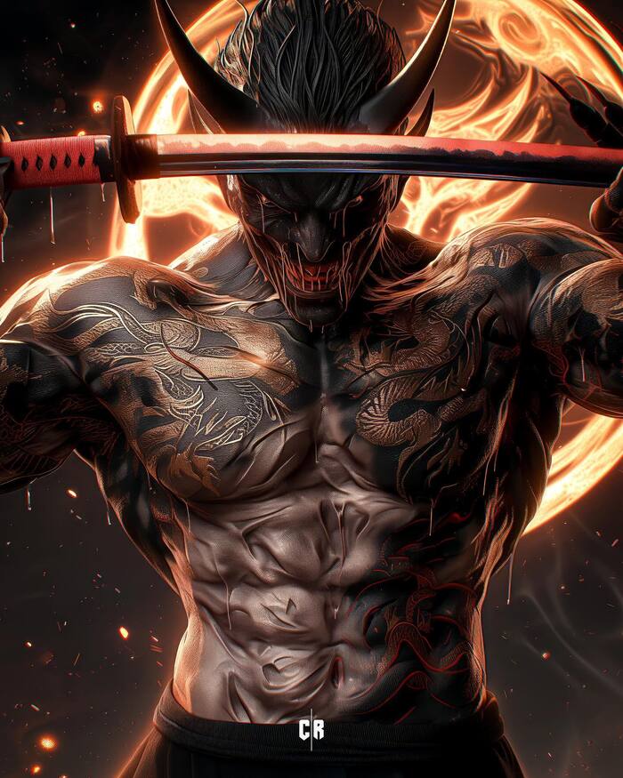 Я покрпче перехватил рукоятку своей катаны и ринулся в самую гущу боя. Сталь моего меча сверкала исполняя безумный танец смерти, оставляя страшные раны и увечия, от меня во все стороны летели рогатые головы, когтистые лапы и отрубленные части тел. В неистовой ярости я превратился в живую мясорубку усеивая свой путь трупами проклятых бестий. Мой меч со свистом рассекал отвратительные морды, скалящиеся пасти и мускулистые шеи, отделял головы от туловищ и продолжал свою смертоносную песнь опустошая вражеские ряды и сея гибель среди адских полчищ.Уворачиваячь от ударов когтистых лап и кривых сабель я без устали рубил направо и налево превратив свою катану в металлический смертоносный вихрь. С ног до головы залитый черной вражеской кровью, стоя на горе изрубленных вражеских трупов и тяжело дыша я осмотрелся.