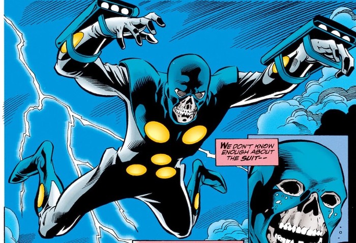 Раз так, самое время сделать очередной перерыв в Алом Забеге, остановившись на комиксе The Flash #131 за ноябрь 1997 года с сюжетом от Марка Миллара и Гранта Моррисона и рисунком от Пола Райана. Итак – ноги Уолли Уэста переломаны в труху. Это значит, бегать он не сможет ещё как минимум неделю. Он всё ещё ускоренный – но инвалидское кресло не может ездить на суперскорости. А Костюма всё ещё нужно обезвредить. Он ведь может перецепиться ещё на кого-нибудь. Кстати, Костюм высасывает жизненную энергию носителя – от Модника уже вообще едва скелет остался, так что новым носителем становится случайно встреченный полицейский. По счастью, Уолли – не единственный скороход Кейстоун Сити. Есть ещё Джей Гаррик, Макс Меркурий и Импульс/Барт Аллен. И Уолли настаивает, чтобы они попеременно геройствовали в его костюме, таким образом действуя на нервы Костюму. Так себе затея – но можно попробовать.