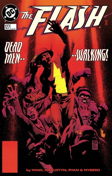 Не знаю как вам, а мне обложка комикса The Flash #127 напоминает обложку комикса Kingdom Come, вышедшего годом ранее. Тоже всё такое красное да зловещее. Джей Гаррик бегает в незнакомом месте, уворачиваясь от атак Негодяев. Он хочет предупредить Уолли о том, что вернувшиеся с того света злодеи могут весь Кейстоун в расход пустить – но получает молнией по хребту от Погодного Волшебника. В Кейстоун Сити Линда Пак продолжает вести репортаж о гаплыке, который поглощает город – пожары с заморозками, все дела. В какой-то момент шальная молния сбивает самолёт и он начинает падать прямо на Линду. В городке Санта Марта Уолли Уэст чувствует, что Линда в опасности – и за считанные секунды добирается до Кейстоуна и спасает её. Пообнимавшись-поцеловавшись с Линдой, Уолли отправляется к мэру, и тот обрисовывает ситуацию (на случай, если так не видно). Негодяи, судя по всему, вернулись с того света. Урон городу – колоссальный. Жертвы – уже больше тысячи погибших. Аргус побит, где Джей Гаррик – неизвестно. Вот что происходит, когда Флэша выгоняют из города.