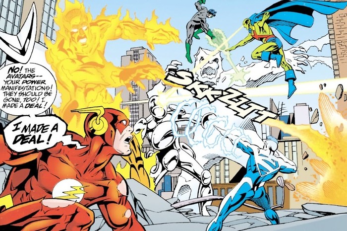 Чертовщина (вместе с раном Марка Уэйда, который продлился 67 выпусков) заканчивается в комиксе The Flash #129. Возвращается Флэш в Кейстоун Сити – и сталкивается с новостями. Хорошая новость – к Негодяям вернулись их души. А с душами Негодяи больше не буянят, а только сидят, ошарашенные, и бормочут «что же мы наделали». Плохая новость – аватары-манифестация их силы всё ещё буянят. Ну типа, огненный великан, ледяной великан и т.д. И сами Негодяи не могут их остановить. Демоны…за любую неточность в составленном ТЗ зацепятся. «Ты попросил сварить тебе борщ – я сварил тебе борщ. Но ты не сказал, что в нём не должно быть говна!».Ещё одна пренеприятнейшая новость – Флэш начал терять контроль над своей скоростью. Уолли неоднократно говорил, что его любовь к Линде – это громоотвод, привязывающий его к правильному месту и времени и не дающий раствориться в Спидфорсе. Что ж – теперь этого громоотвода нет. И что ещё хуже, скорость Уолли подпитывает «аватары» Негодяев, делая великанов ещё сильнее.