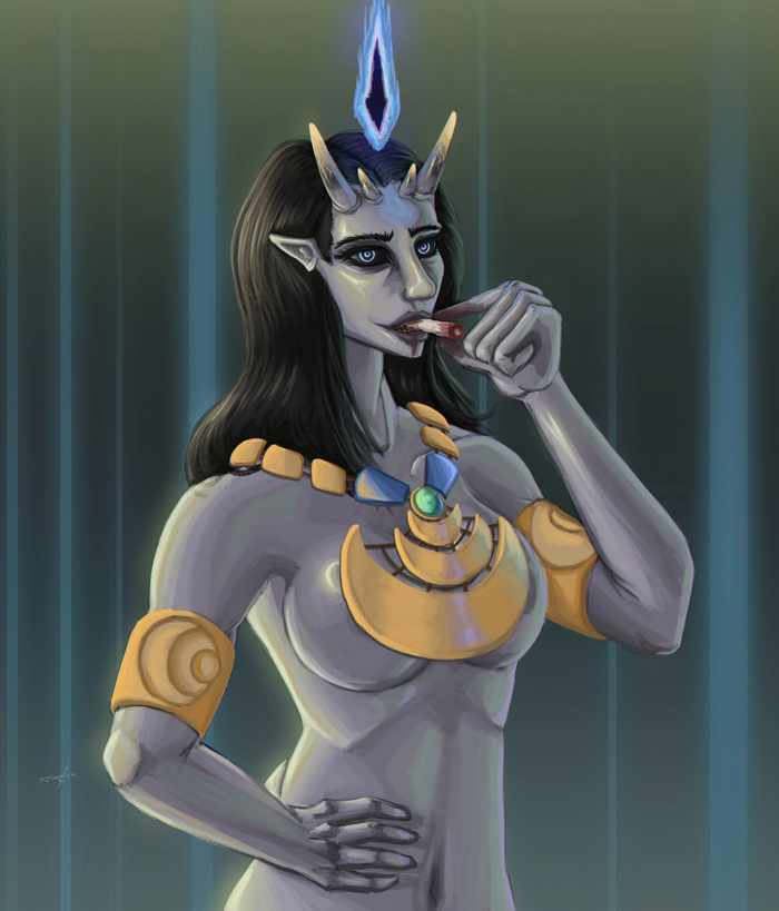 Та же героиня но в предыдущем посте: Нарисовал демонессу, но обе ступни у неё оказались правые. Пришлось исправлять