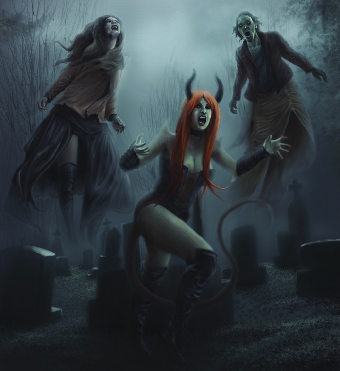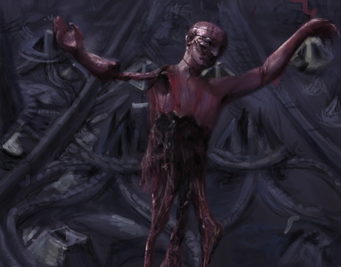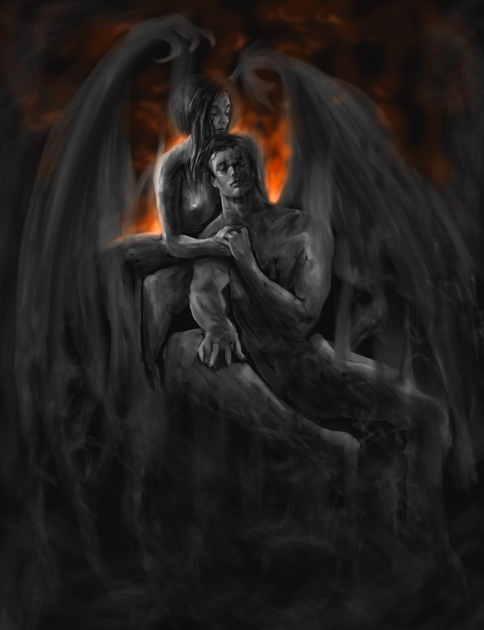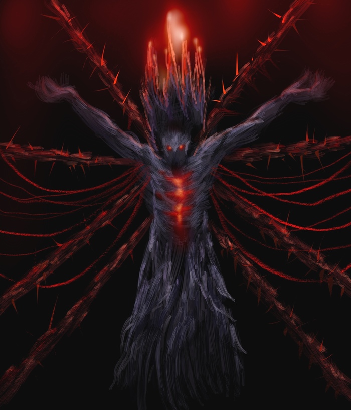 Отец резко остановился, боясь повернуться. Лицо матери стали покрывать красные сгустки крови, которые медленно стекали по всему телу. Она превращалась в пугающего монстра с ужасными крыльями за спиной. Черный туман охватил солдат, в один момент они превратились в желеобразную красную жидкость и растеклись по траве.