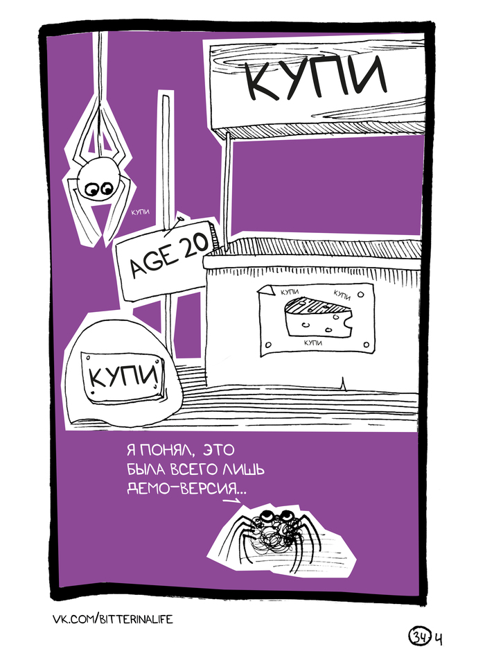 139 NikaMett Комиксы Юмор Демоверсия 6 лет назад Показать полностью 5 [моё] Демотиватор Комиксы Веб-комикс Авторский комикс Ожидание и реальность Жизнь Юмор Длиннопост Паук
