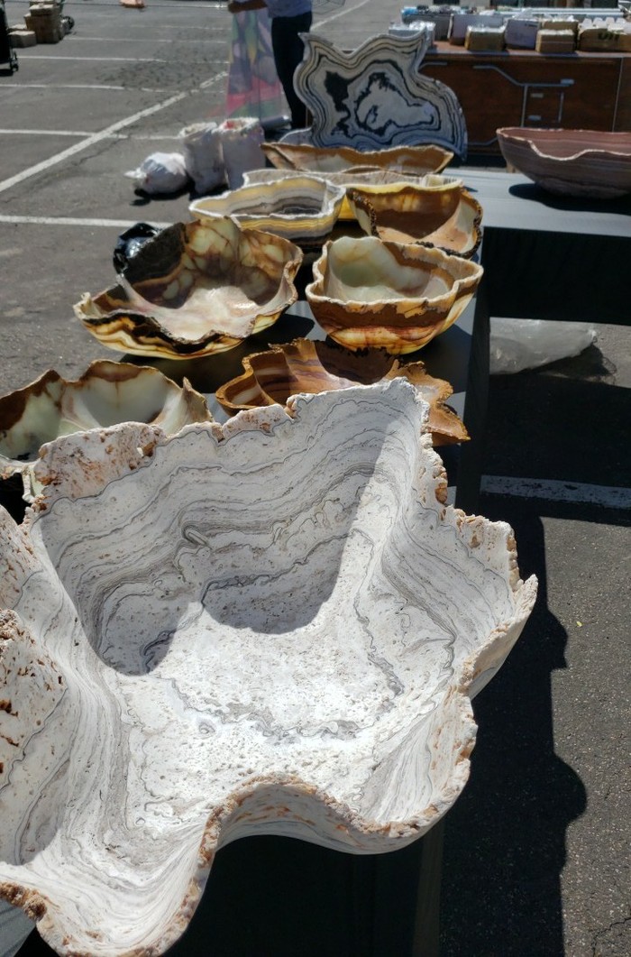 В продолжение серии постов с выставки минералов в Дэнвере. На этот раз пост посвящается окаменелостям (аммониты тоже окаменелости, но я их решил в отдельный пост выложить). В конце поста немного фотографий огромных чаш из агата.