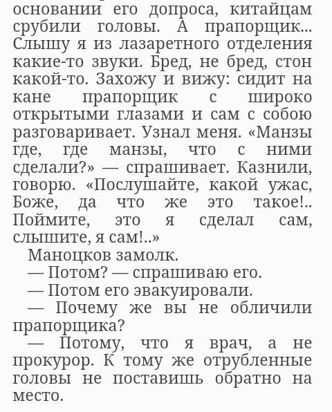 Сошлось человек двадцать, он сделал им доклад о положении дел у Деникина, а потом вынул револьвер,- руки вверх - и всех арестовал и доставил начальству.