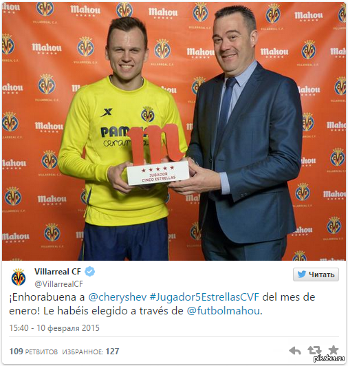 Денис Черышев второй раз получает звание лучшего игрока месяца в «Вильярреале»