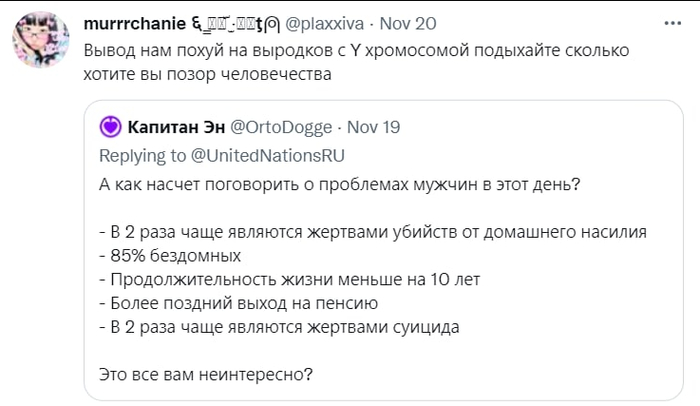 X (Twitter) Скриншот Негатив Мат Оскорбление Мизандрия День Мужчин Длиннопост