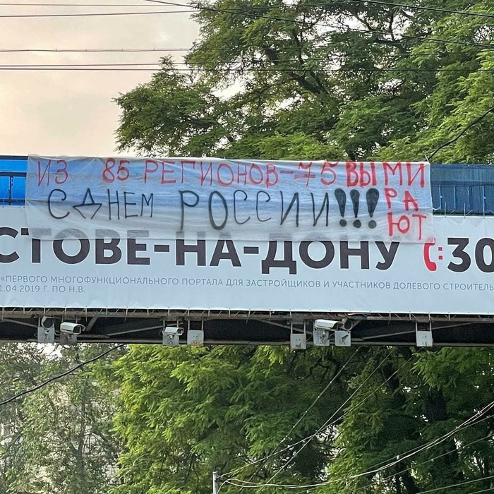 Сегодня в Ростове неизвестные развесили плакаты с остросоциальными лозунгами в честь «Дня России».